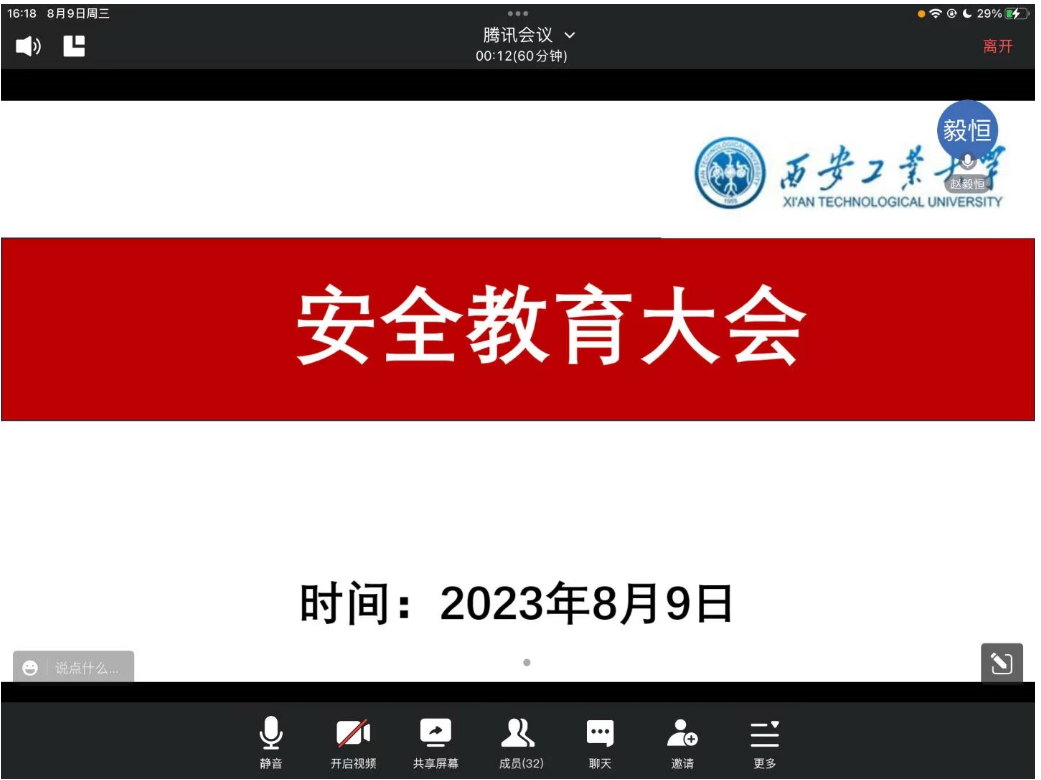 目前正值暑期,自然灾害频发、新型互联网诈骗手段层出不穷,为进一步加强大学生校内外人身财产安全意识,8月9-10日3003新葡平台登录入口对全体学生开展了防汛防溺水、反电信诈骗与自身财产及出行安全线上教育培训,使同学们敲响了安全的警钟,增强自我安全防范技能,共同构建平安和谐校园!