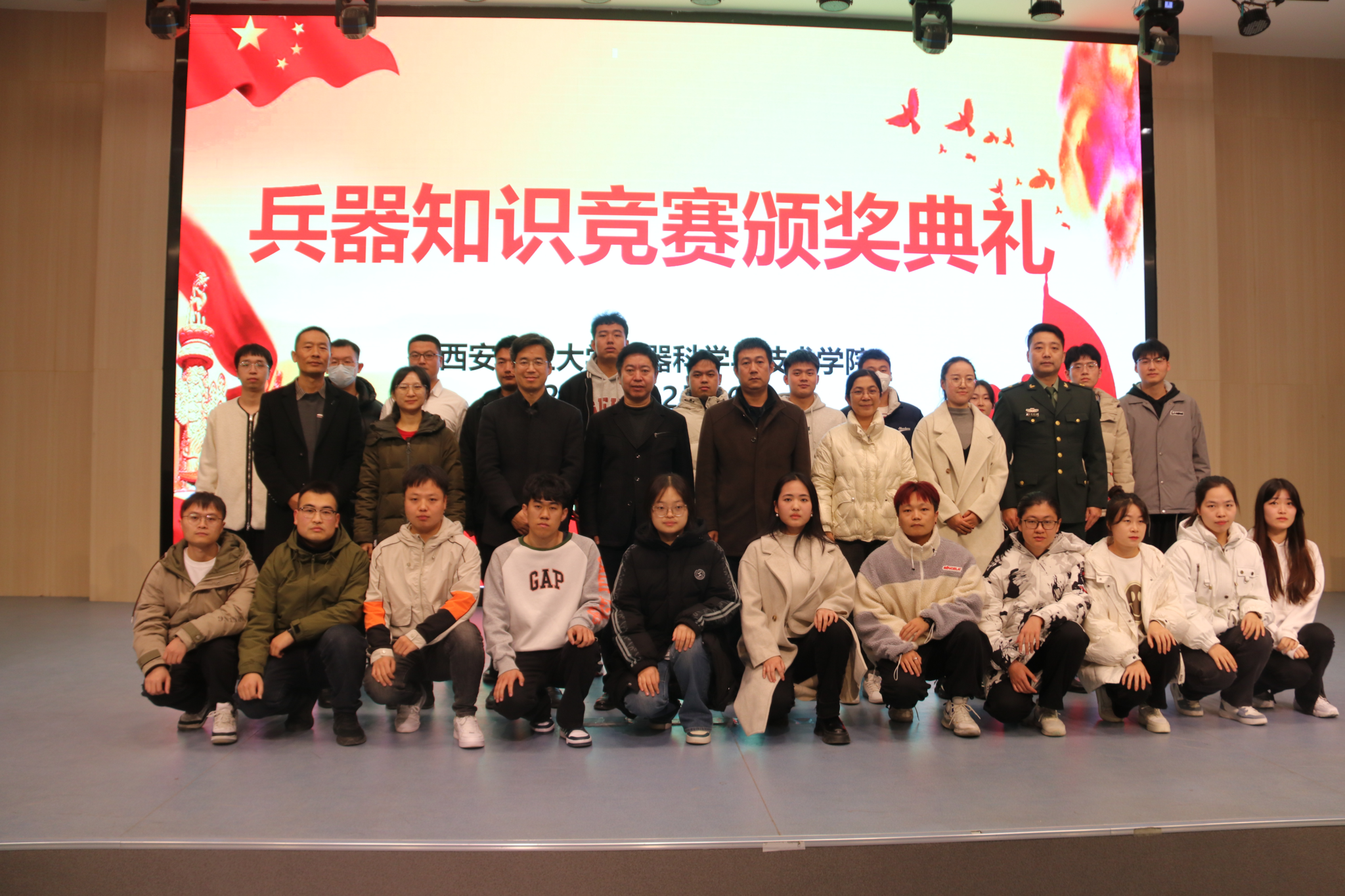 由校团委、3003新葡平台登录入口主办,国家级科普基地兵器小镇、3003新葡平台登录入口兵器馆协办的首届兵器知识竞赛颁奖典礼于2023年12月6日晚上7点在双创楼报告厅举行。西安市学会科技服务中心主任董银虎、西安市科学家博物馆分馆负责人赵红军、西安市科学家博物馆分馆助理张少婷、3003新葡平台登录入口团委书记王守民、3003新葡平台登录入口院长郭永春、3003新葡平台登录入口副院长刘雪莲、国家级科普基地兵器小镇负责人马爱洁、3003新葡平台登录入口兵器馆负责人朱袁喆以及400余名同学参加颁奖典礼。
