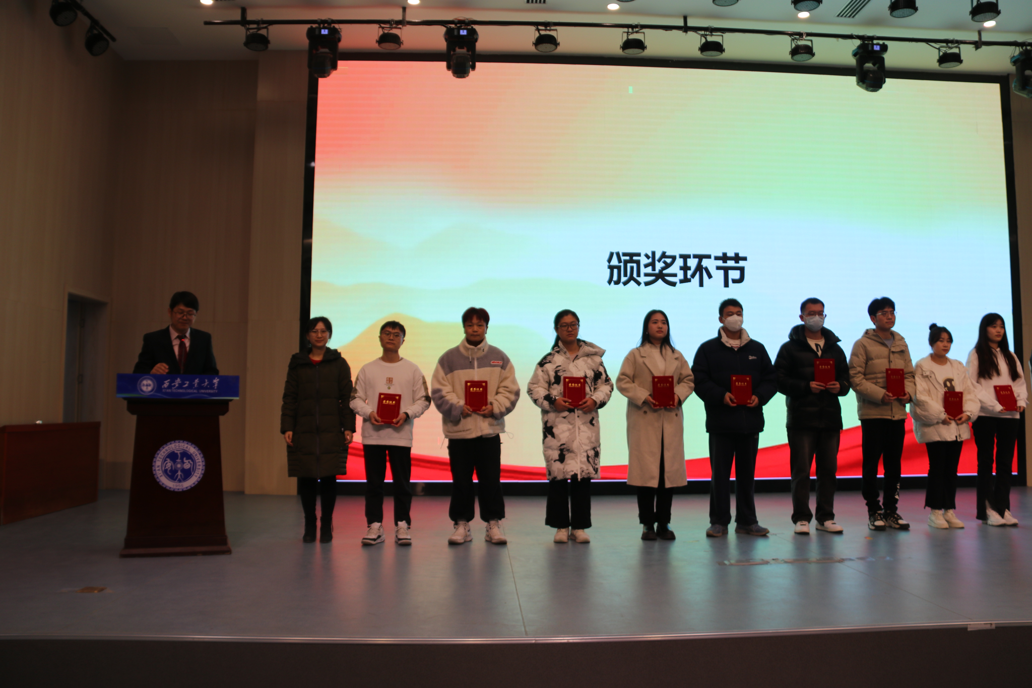 西安市学会科技服务中心主任董银虎为一等奖获奖选手颁奖。