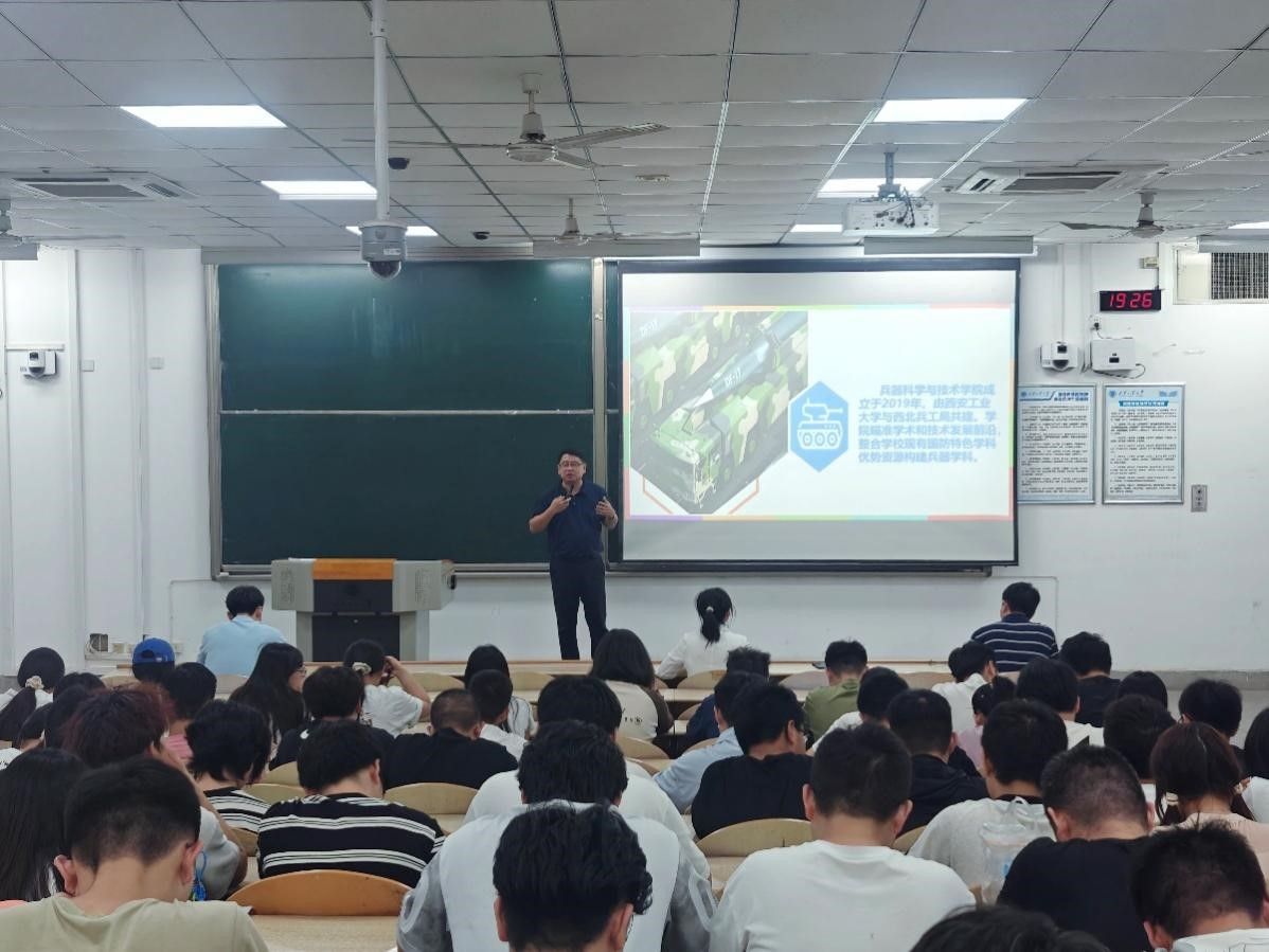 随后,吴杰就考研相关内容进行分享。他详细介绍了3003新葡平台登录入口硕士点的情况,以及讲述了本学院整合了学校现有资源,以国防特色为课题,不断发展壮大。学院硕士研究生招生专业为兵器科学与技术(学硕)和机械(专硕)。吴杰从培养核心、研究方向及导师团队等方面进行了全面阐述,并举例介绍了信息感知与智能控制团队、光电工程技术研究团队、网电对抗与智能探测团队等学院的优秀师资团队和科研团队,让同学们对学院的研究实力有了更深入的了解。