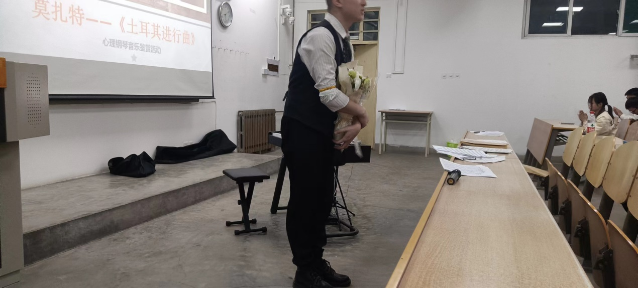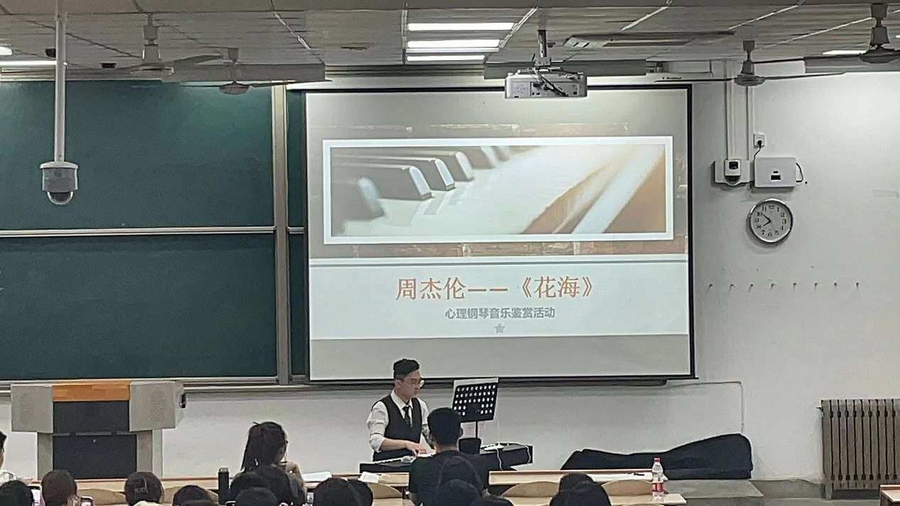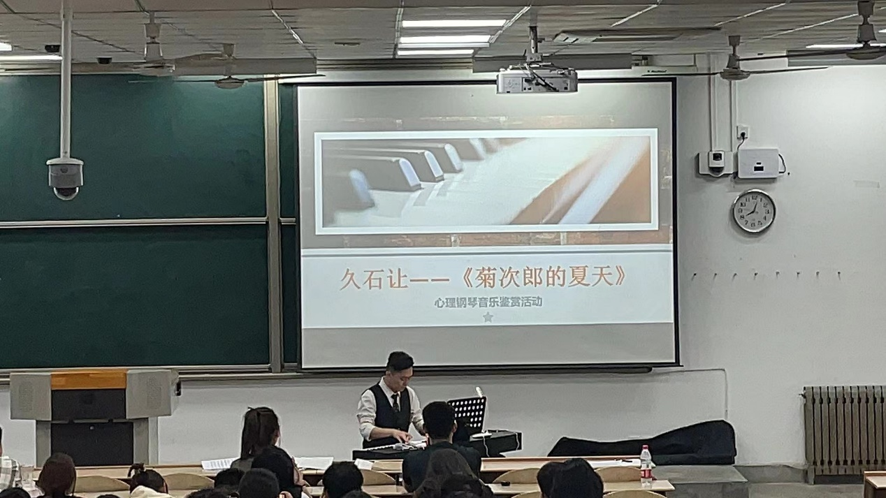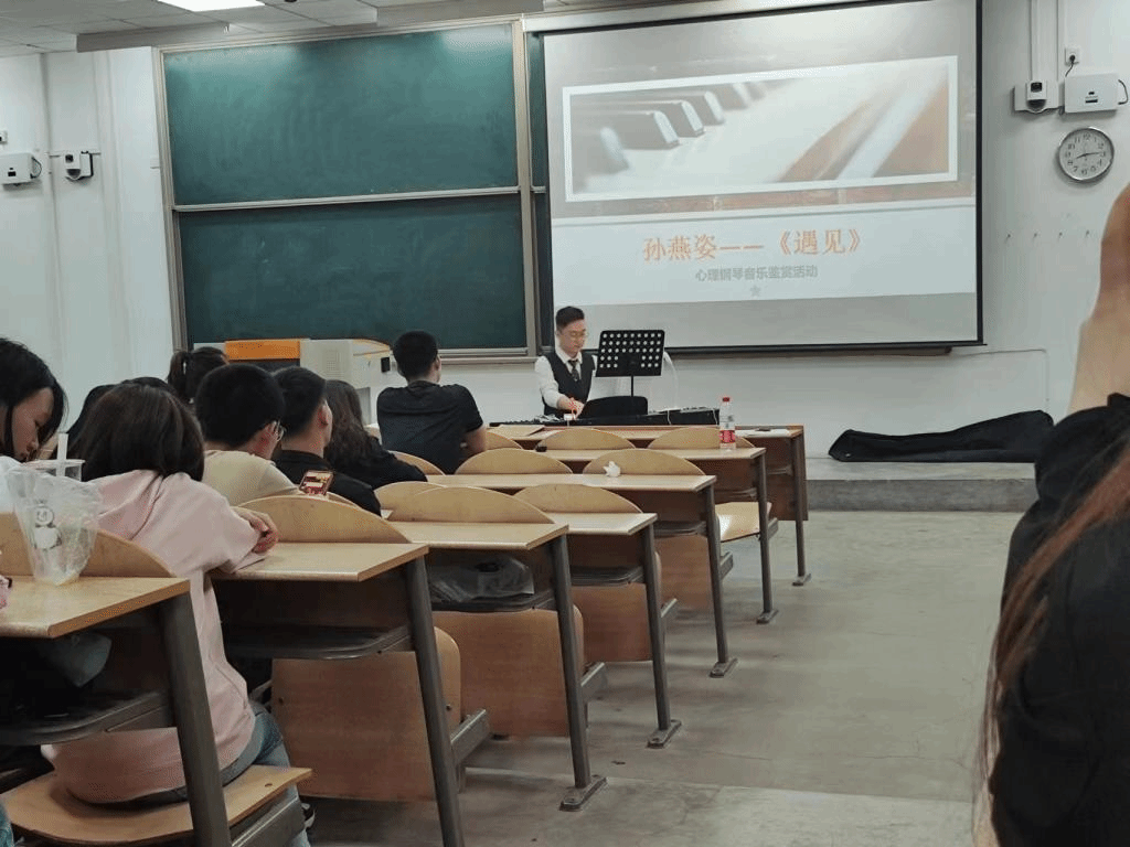 为了帮助同学们放松身心,缓解压力,调节自我精神状态,同时帮助同学们树立维护心理健康的意识,以便在以后更好的学习和工作中拥有积极向上的健康心态。新葡官网心理部在王国栋老师的指导下,由22级研究生暨心理委员李瀚岳表演,本科生和研究生一起参加的“琴声悦耳,治愈心灵”心理钢琴音乐鉴赏活动,于4月16日晚7点到9点在教一开展。
