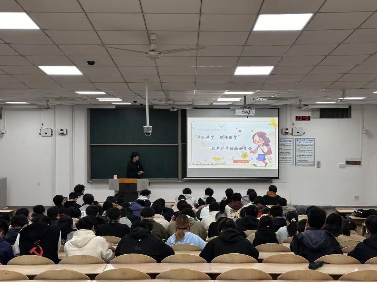 李欣岫开场便深入分析了当前就业形势,用详实的数据和生动的案例,让同学们清晰认识到就业竞争的激烈。在讲解考研与就业的抉择时,他客观地阐述两者的利弊,引导同学们结合自身情况思考。对于就业方向,李欣岫依据专业特点,介绍了多个有潜力的行业领域,拓宽了同学们的视野。接着,他结合自身经历,讲述了他的推免过程。同时,参照学校下发文件,详细解读了推免条件以及所需付出的努力,鼓励同学们积极争取推免机会,为大家指明努力的方向。最后,他还介绍了一些学校的的推免加分项目,有效解决了同学们在推免方面的诸多困惑。他的讲解全面且细致,每一个环节都紧紧围绕同学们关心的问题展开,无论是对就业考研形势的分析,还是推免相关内容的解读,都让同学们收获颇丰,为大家在未来发展道路的选择上提供了有力的指导。