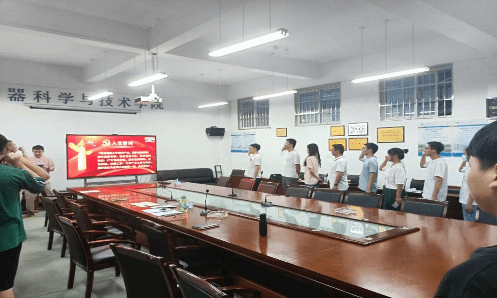 大会决议后,学生支部书记王绍旭同志对本次大会进行总结,并对新接收的预备党员作出了指导意见并提出了更高的要求。最后,王绍旭同志带领各位新接收的预备党员在党旗下进行了光荣的入党宣誓。