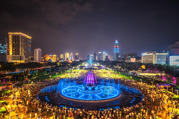 泉城广场是济南市的中心广场。广场位于市中心繁华地带,处于“千佛山――趵突泉――大明湖”著名特色旅游区的中心,东起南门大街,西至趵突泉南路,南临泺源大街,北依环城公园,东西长780米,南北宽230米,占地总面积约16.96万平方米,新建建筑6.8万平方米,地上花岗岩铺设13万平方米,绿化面积5.6万平方米,工程概算总投资为13.5亿元。整个泉城广场自西往东由趵突泉广场、南北名士林、泉标广场、颐天园和童乐园、下沉广场、历史文化广场、滨河广场、荷花音乐喷泉、文化长廊、四季花园、科技文化中心等十余部分组成。